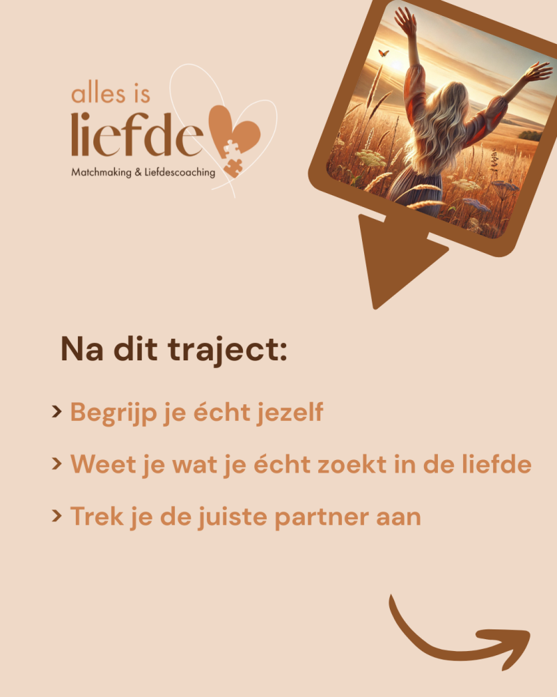 - Dit volledige traject zit standaard inbegrepen in ons VIP-Matchmaking-Traject van 12 maand.